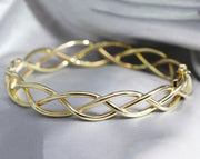 9ct Yellow Gold 10.5mm wide crossover pattern hinged Bangle.
