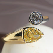 18ct Yellow & White Gold Toi Et Moi Dress Ring containing a 1.01ct Fancy Intense Yellow, SI2 pear cut Diamond & a .40ct I, SI2 round cut Diamond, both bezel set and from the Argyle mine.