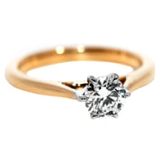 18ct Yellow & White Gold Engagement Ring containing a .72ct G, SI1 round cut Diamond in a six claw setting.