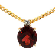 Oval Cut Garnet, Diamond & Yellow Gold Pendant