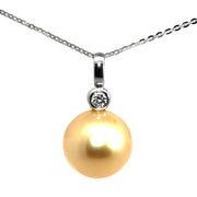 18ct White Gold Pendant containing a 11.3mm Golden South Sea Pearl & a .07ct G, SI round cut Diamond bezel set.