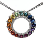 18ct White Gold circle shaped Slider containing 16 round cut multi-coloured Sapphires equaling 1.61ct & 46 G, SI round cut Diamonds equaling .33ct, all claw & micro set.