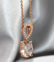 Oval Cut Morganite, Diamond & Rose Gold Pendant