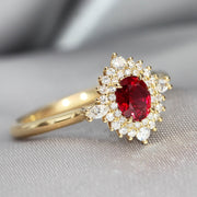 Double Halo Diamond, Ruby & Yellow Gold Ring