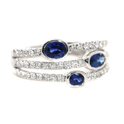 Three Row Ceylon Sapphire & Diamond Dress Ring