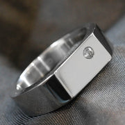 7.5mm Stainless Steel flat top Gent's Ring containing a round cut Cubic Zirconia hammer set.