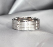 Three Row Diamond & White Gold Gents Ring