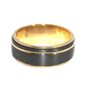 9ct Yellow Gold polished Band with Tantalum brushed finish inlays, 8mm wide.