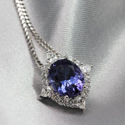 18ct White Gold Pendant containing a 2.93ct oval cut AAAA grade Tanzanite, 4 G, SI pear cut Diamonds equaling .31ct & 12 G, SI round cut Diamonds equal to .32ct.