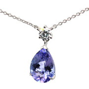 18ct White Gold Necklet containing a 2.08ct pear cut Tanzanite & a .18ct G, SI round cut Diamond, all claw set and attached to a 45cm trace Chain.