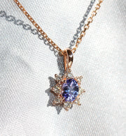 18ct Rose Gold Pendant containing a 1.59ct oval cut Tanzanite & 8 J, SI round cut Diamonds equal to .06ct, all claw set.