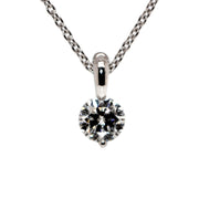 18ct White Gold Pendant containing a .56ct F, SI round cut Aurora Diamond in a two claw setting, attached to a 45cm trace link Chain.