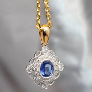 18ct White & Yellow Gold Pendant containing a .37ct oval cut Sapphire & 20 G, SI round cut Diamonds equal to .20ct.