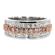 18ct White & Rose Gold Dress Ring containing 14 round cut purplish Pink Diamonds from the Argyle Mine equaling .44ct & 28 G, SI round cut Diamonds equal to .84ct, all channel and claw set.