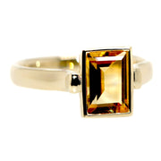 9ct Yellow Gold Gold bezel set Dress Ring containing a 1.50ct radiant cut Citrine.
