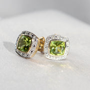 Cushion Cut Peridot & Diamond Studs