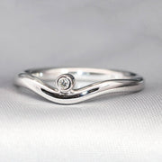 9ct White Gold Band containing a .03ct J, SI round cut Diamond, bezel set.