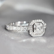 18ct White Gold Engagement Ring containing 41 assorted cut G, SI Diamonds equaling .66ct, all set into the halo, shank & magic asscher.