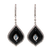 9ct White Gold Drop Earrings set with Onyx, Blue Topaz & .40ct of G, SI round cut Diamonds.