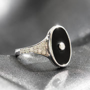 9ct White Gold Dress Ring containing a 2.74ct oval cut Onyx & 21 J, SI round cut Diamonds equaling .29ct, pave set into the shoulders.