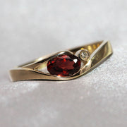 Oval Cut Garnet, Diamond & Yellow Gold Ring