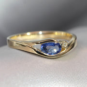9ct Yellow Gold Dress Ring containing a .60ct oval cut Sapphire & .01ct J, SI round cut Diamond.
