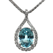 18ct White Gold claw set Pendant with a 3.71ct oval cut Zircon, surrounded by 31 G, SI Diamonds equal to .21ct, all micro set.