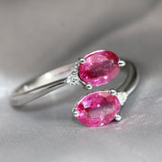 18ct White Gold twist Dress Ring containing 2 oval cut Pink Sapphires equaling 1.8ct & 2 G, SI round cut Diamonds equal to .04ct, all claw set.