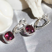 18ct White Gold drop Earrings containing 2 cushion cut Pink Tourmalines equaling 2.12ct & .30ct of G, SI round cut Diamonds.