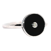 Round Onyx, Diamond & White Gold Dress Ring
