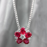 18ct White Gold flower style Slider containing 5 oval cut Rubies equal to 1.08ct & 6 G, SI round cut Diamonds equaling .162ct, all claw set.