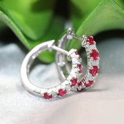 14ct White Gold Huggies containing 10 Rubies equaling .66ct & 16 G, SI Diamonds equal to .09ct, all round cut and micro set.