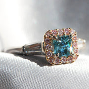 Square Emerald Cut Zircon & Pink Diamond Ring