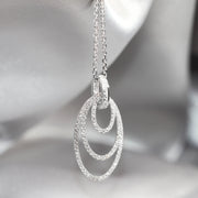 18ct White Gold Oval circle drop Pendant containing 112 G, SI round cut Diamonds equaling .42ct, all micro set.