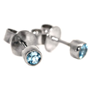 9ct White Gold Studs containing 2 round cut Blue Topaz equaling .24ct, all bezel set.
