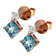 9ct Rose & White Gold Studs containing 2 princess cut Zircons equaling 1.95ct & 2 G, SI round Diamonds equal to .13ct, all claw set.